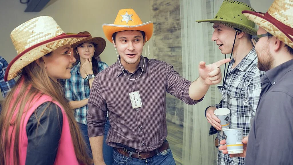 Квест на день рождения “Где-то на Диком Западе”: Вот так прогресс! Вчера наши народы спорили за территорию, а сегодня мы вместе позируем для соцсетей. Следующий шаг — совместный стартап по прокату лошадей и кофейня на вынос для ковбоев!