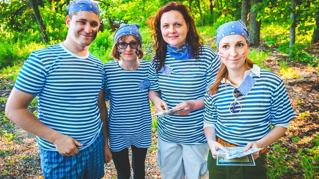 Квесты на природе — это праздник для взрослых, детей или подростков. Игроки взаимодействуют не с предметами, как в квест-комнате, а друг с другом. К вам на пикник приедет ведущий с игрой и реквизитом, и гости на пару часов перевоплотятся. Например, в пиратов.